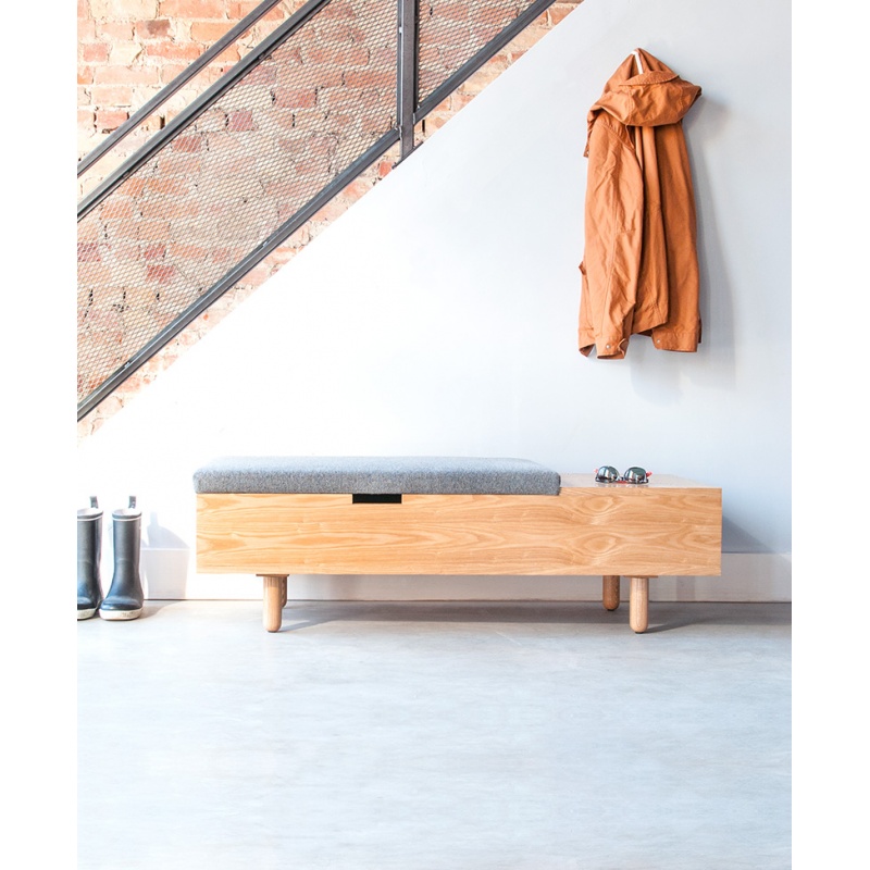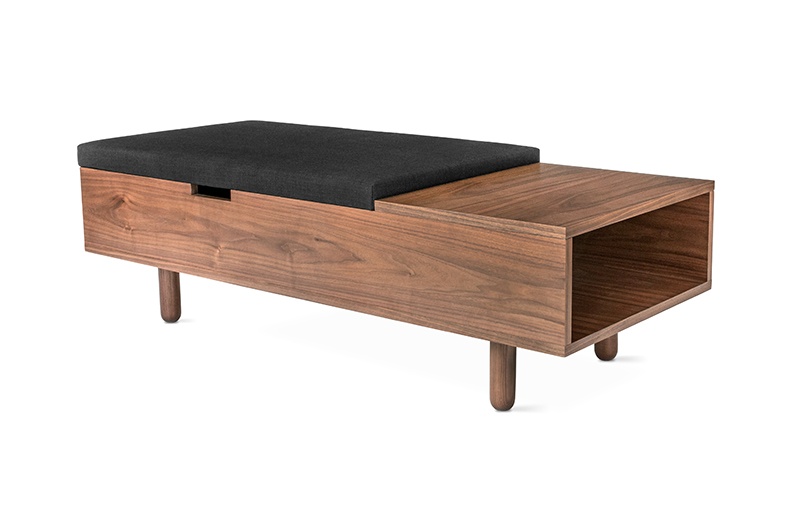 Part of the Mimico Series, this multi-purpose design has a distinctive Scandinavian influence. The Mimico can be used as an ottoman, coffee table, or bench. Perfect for the living room, bedroom or entryway, the upholstered top provides a comfortable seat, and flips up easily to stash clutter. It features a hard surface area to rest your sunglasses or keys while you get ready for the day. The end has an open cubby for displaying books and magazines, and the legs are turned, solid wood.