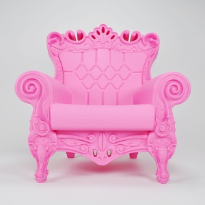 The Little Queen of Love by Linvin. An ironic revisiting of the Louis XV style, the Little Queen of Love Armchair is not only a luxurious choice for seating but an irresistible statement piece for any child's decor. This surprisingly comfortable armchair owes its whimsical appearance to its bright, modern color choices, the exaggerated contours and intricate details that encompass each armchair. Perfect for a little Prince or Princess, the Little Queen is 30% smaller than the Queen!