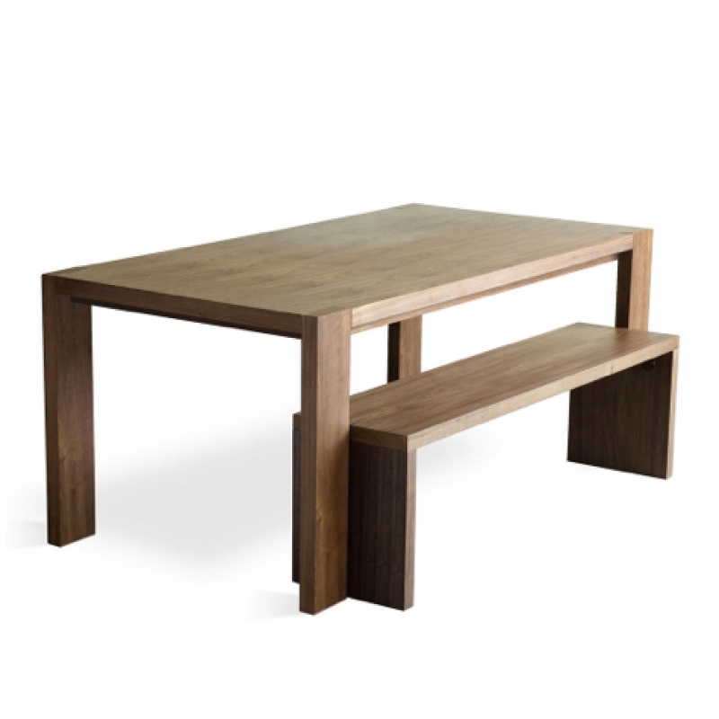 Plank Dining Collection by Gus Modern. These pieces truly showcase Gus' philosophy of being inspired by materials. The Plank collection's minimalist design allows for the walnut grain to be the main decorative element of these pieces. The legs themselves become an interesting design element as they pass through the table top.