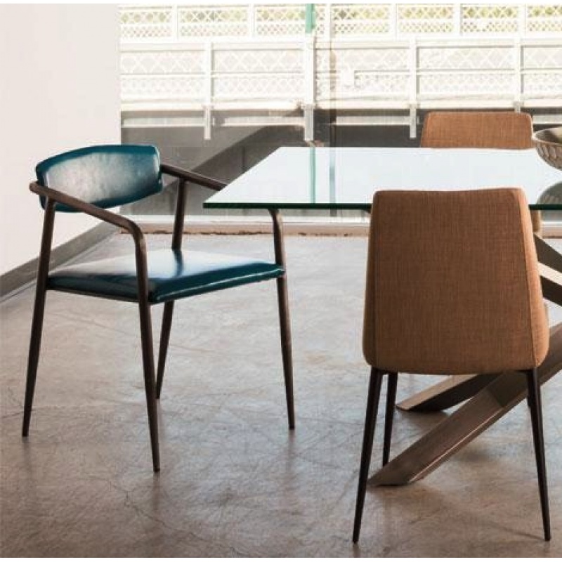 Our Columbia dining chair is made from a sturdy metal frame and top grain leather. It's classic form allows use in any number of styles and spaces.