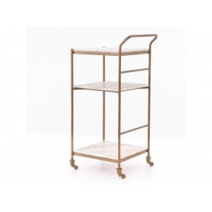 With a vintage-inspired personality, the Feliz Bar Cart features a fashion forward style. Antique brass meets white marble in perfect harmony.