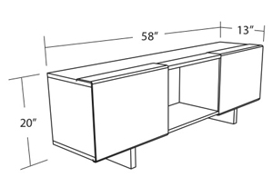 Dimensions: 58L x 20H x 13D"