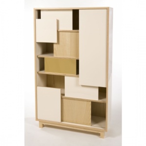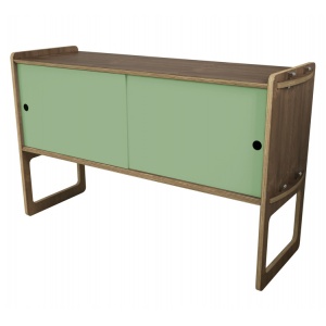 Bars of powder coated steel, along with solid wood shelves, are formed into two different storage options, the Palm Coat Rack and the Palm Shelf. Made in Minnesota.