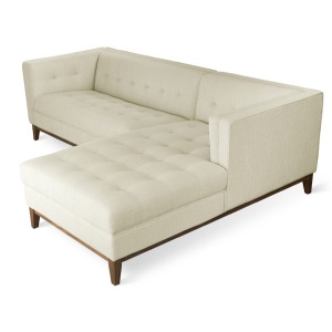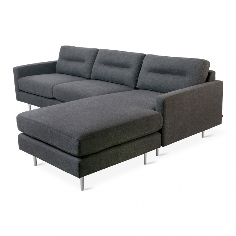 The Logan Bi-Sectional by Gus Modern balances comfort with refined, modern style. The back cushions have a unique, channel-stitch detail which creates a subtle play of light and form. Compartmentalized cushions filled with loose-spun poly help to give the feel and comfort of down while maintaining a clean, crisp shape. Cylindrical stainless steel legs keep things simple and airy. This sectional is cleverly designed to allow the chaise to be positioned on the left or the right, so it can adapt to any room layout. Constructed with kiln-dried 100% FSC®-Certified hardwood.