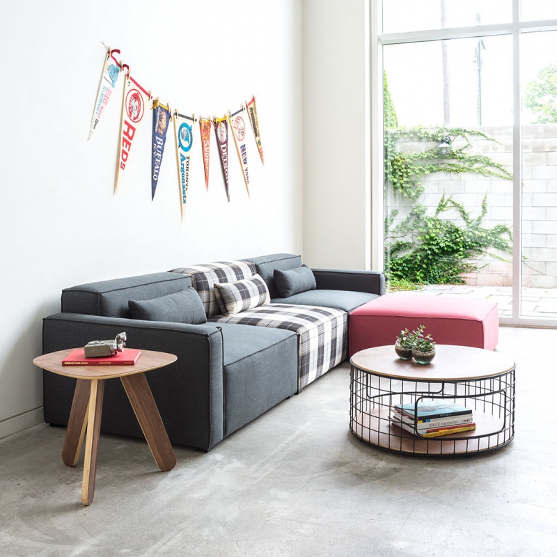 The Gus Modern Mix Modular Collection lets you mix and match components and fabrics to build a custom sectional, sofa or chaise to perfectly suit your space. The design uses 5 basic components (left arm unit, right arm unit, armless unit, corner unit, and ottoman) which can be added and combined to create an unlimited number of upholstery configurations. Choose matching fabrics or mix things up to make it your own. Components can be easily reconfigured or added later to adapt to changing needs. Move an ottoman from the left to the right side of a sectional to change the layout of your space. Build a condo-sized sectional knowing that you can add more components down the road if needs change. The tight seat and back give the design a clean-lined, contemporary look, and each component has French seams to subtly soften the edges. Includes matching bolster cushions for added style and comfort. Constructed with kiln-dried 100% FSC®-Certified hardwood in support of responsible forest management.